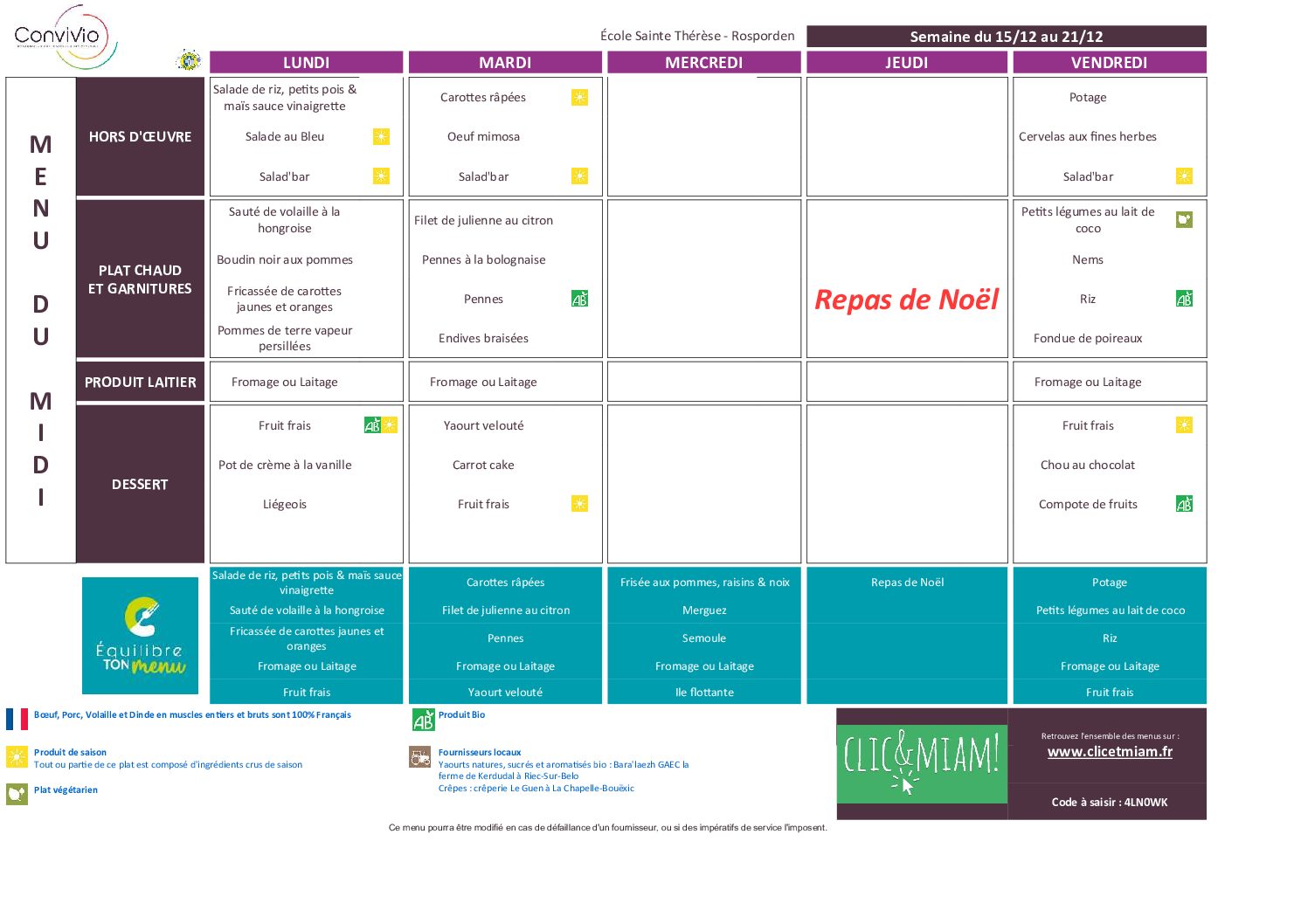 Semaine du 15 au 19 décembre 2025 : maternelles par admin4805 | Nov 3, 2019 | Les menus du Self | 0 commentaires